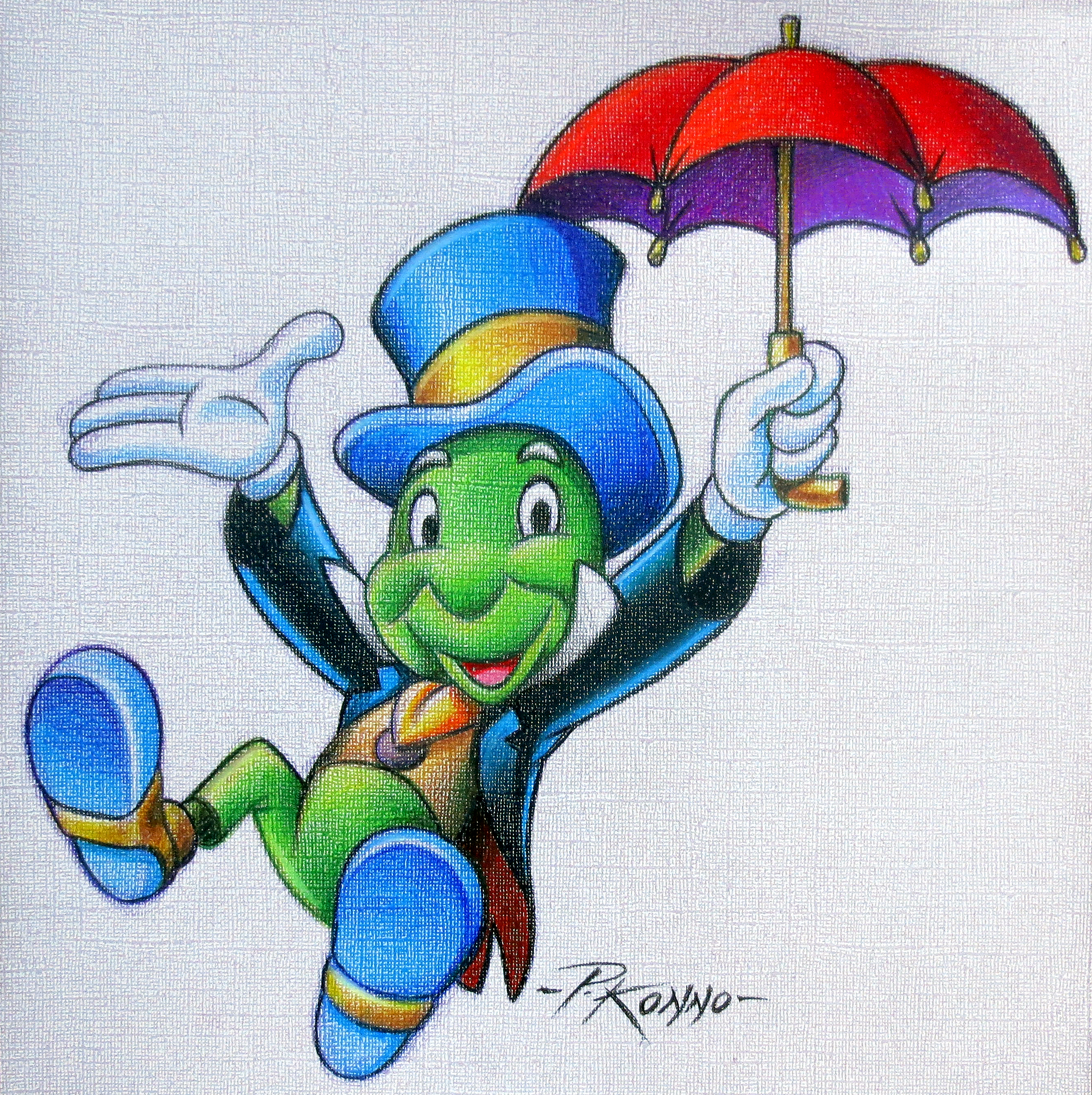 Jiminy Cricket – color pencils on 12x12 inch Canson paper.