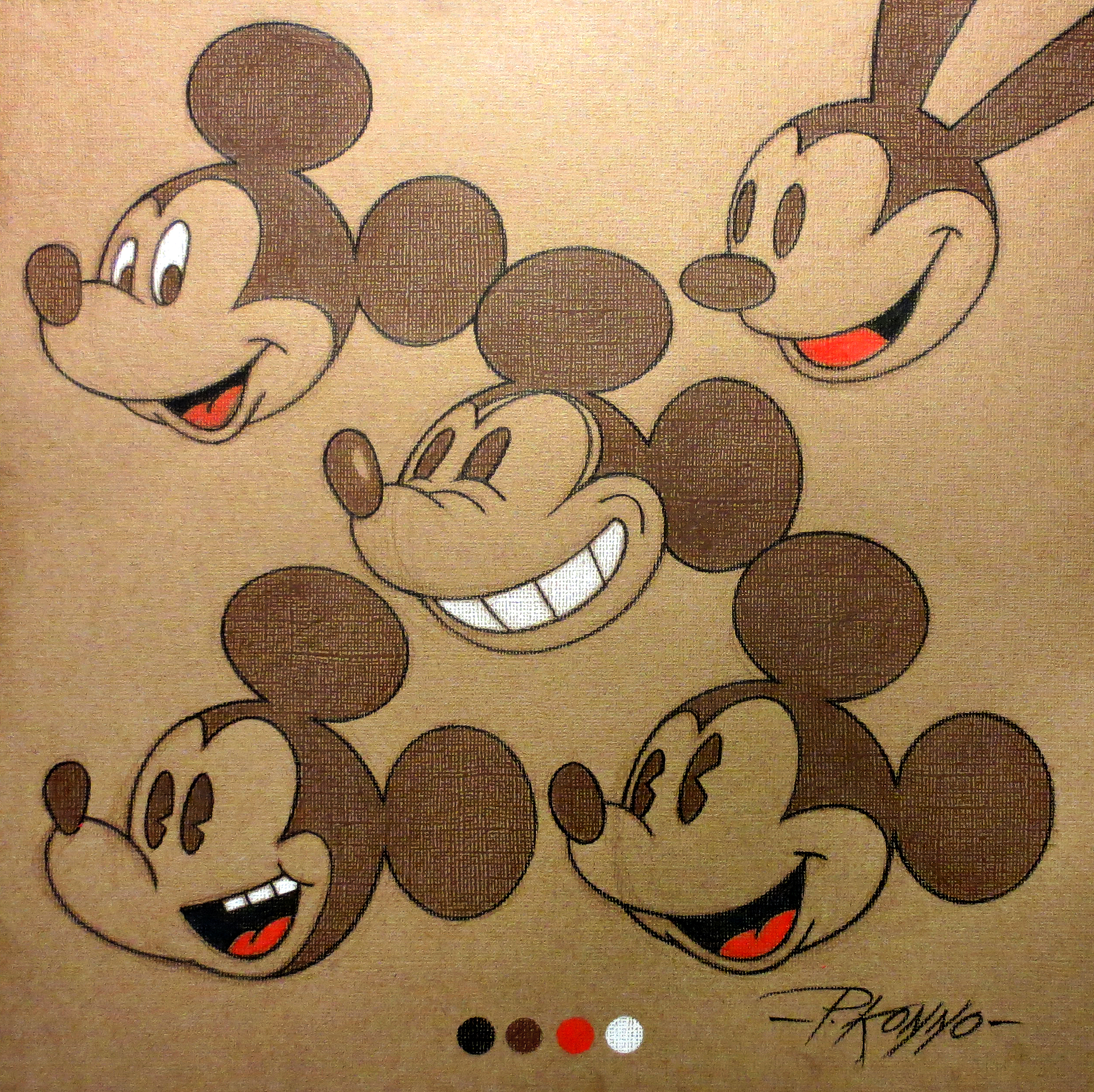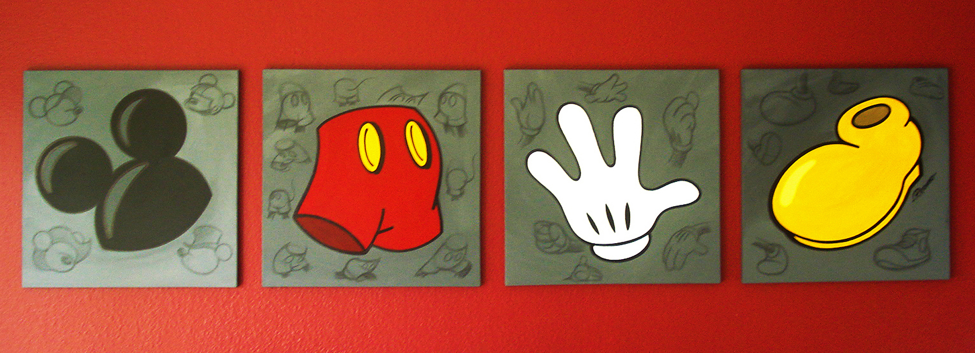 Mickey Gear – acrylics and black pencil on 20x20 inch canvases.