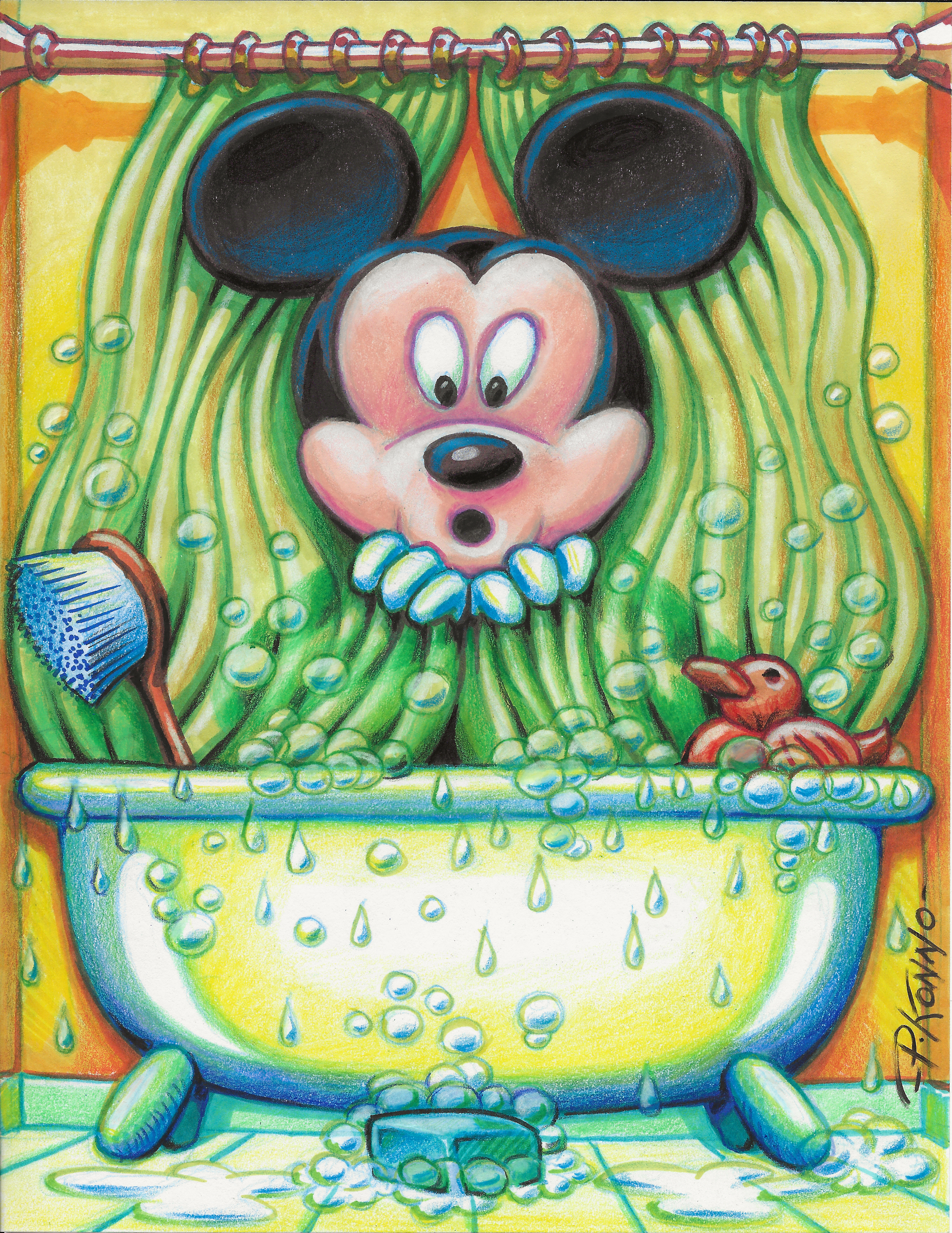 Modern Cartoon Mickey – color pencils and markers on 12x12 inch Canson paper.