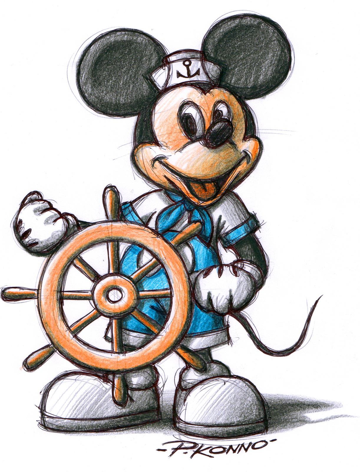 Sailor Mickey – Markers and color pencils on paper.