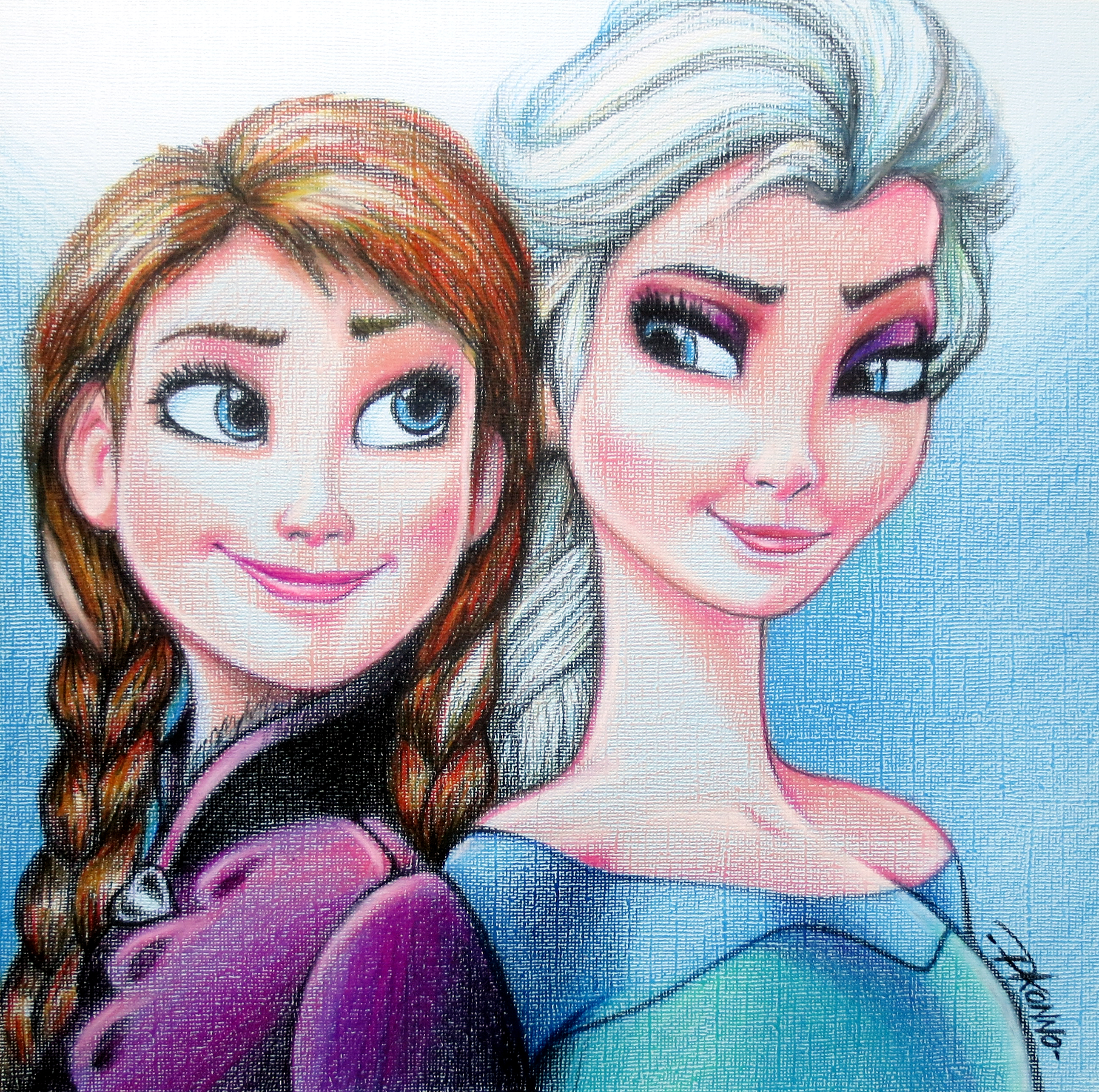 Anna & Elsa – color pencils on 12x12 inch Canson paper.