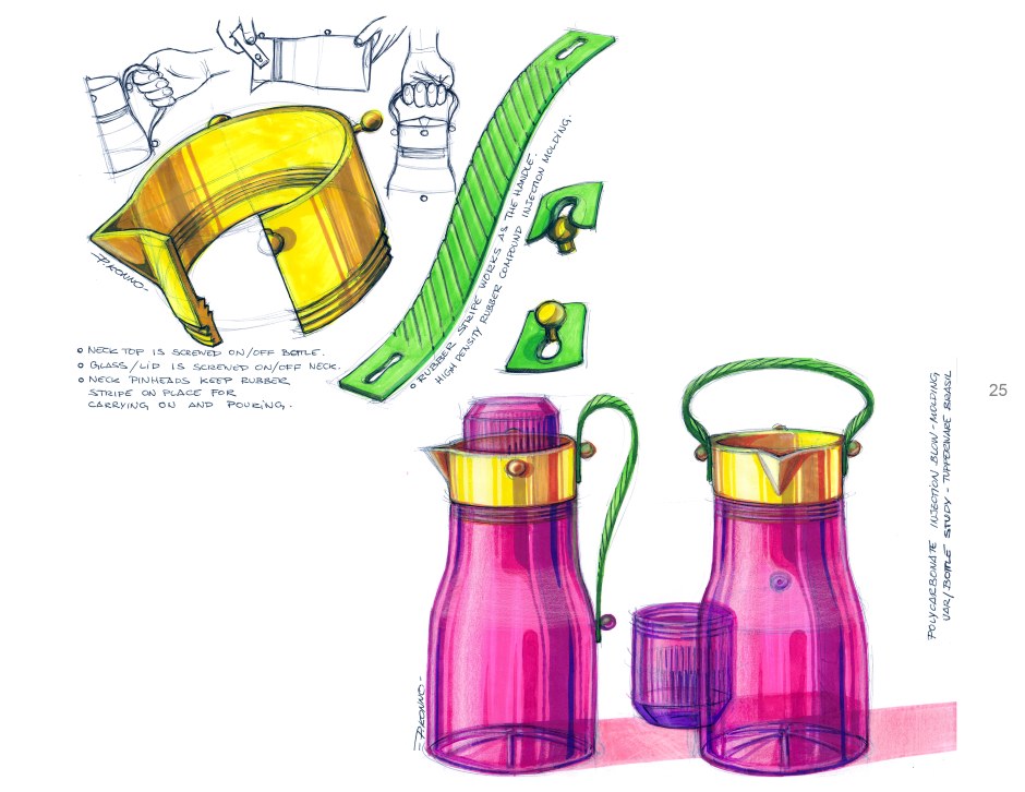 Manual sketches and 3D digital design.
